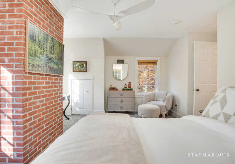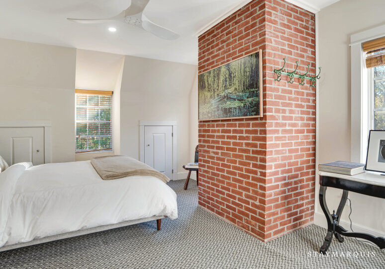 - Primary Bedroom: One King Bed, 2nd Floor, Air Conditioning, Ensuite Bathroom, Closet