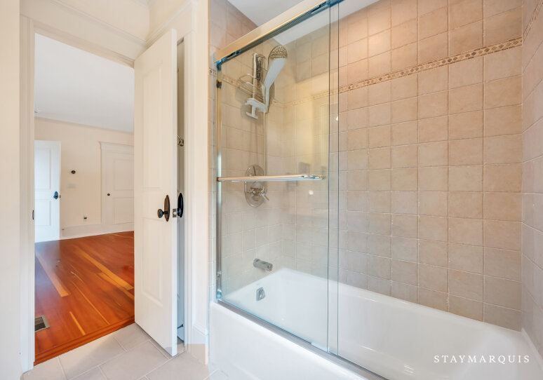 - Bathroom 4 - First Floor Hall: Full Bath, First Floor/Main Floor, Shower/Tub Combo