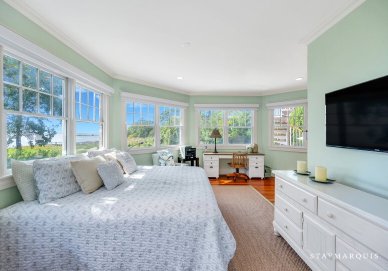 - Bedroom 4 - Guest: One King Bed, First Floor/Main Floor, Air Conditioning, Streaming TV, Standard Closet, Balcony/Deck