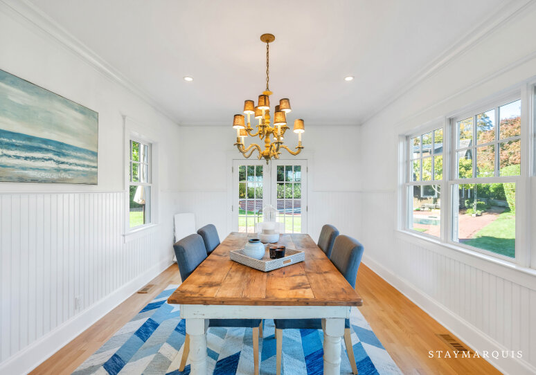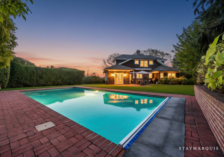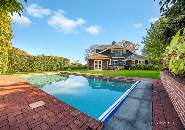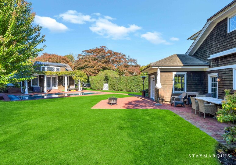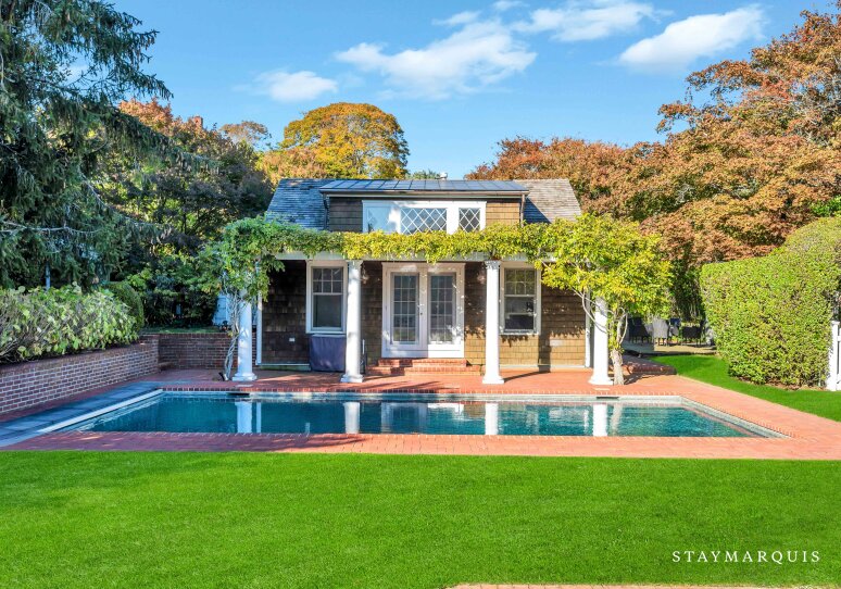 Nestled along the tranquil waters of Shinnecock Bay, this charming, spacious 4-bedroom, 4-bathroom retreat offers the refined escape you’ve been dreaming of. The home features elegant, chic furnishings and décor throughout, water views that invite a sense of calm, and is just steps from the beach — a rare combination of effortless luxury and seaside serenity. With a heated pool, bubbling hot tub, an alfresco dining setup complete with a top-of-the-line gas BBQ, and a cozy fire pit, this property is designed for effortless entertaining and relaxation. For added flexibility, there’s also a detached guest house with its own bedroom and bathroom, ideal for extended family or a little extra privacy.