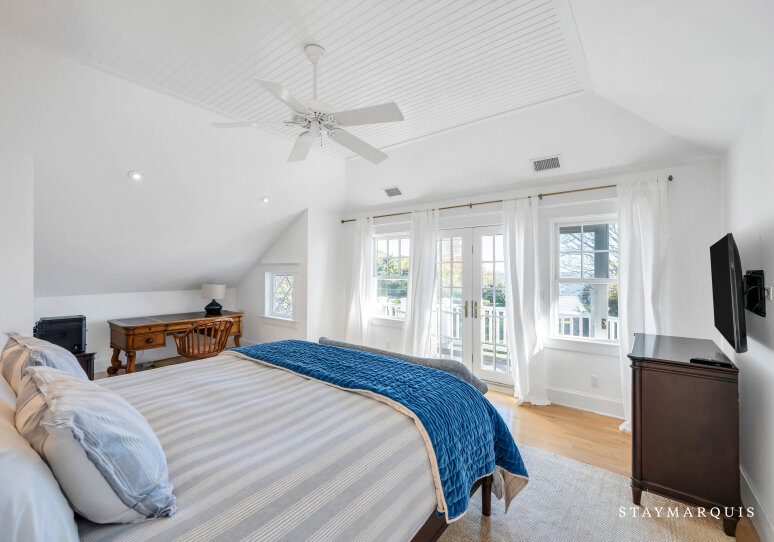 - Primary Bedroom: One King Bed, 2nd Floor, Air Conditioning, Full Ensuite Bathroom, Streaming TV, Walk-in Closet, Balcony/Deck