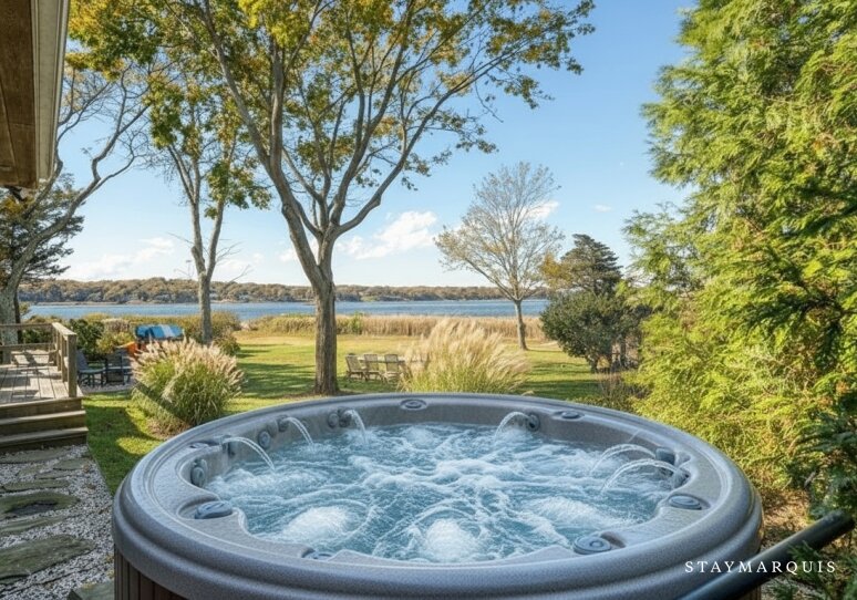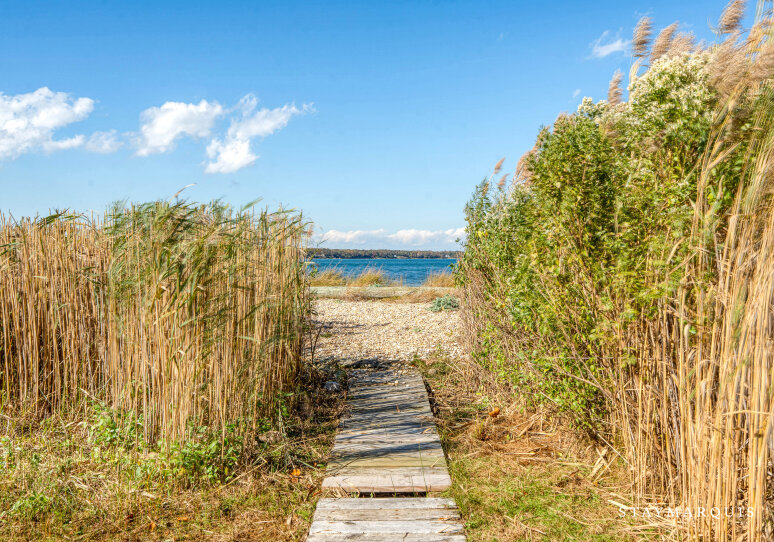 Charming Waterfront Escape: A Chic East Hampton Cottage with Private Beach, Hot Tub, and Sweeping Harbor Views