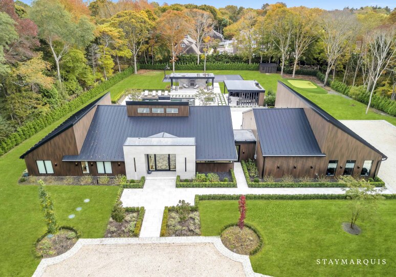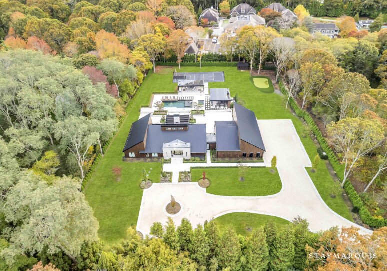 This modern, chic Southampton estate embodies luxury, style, and serenity—a contemporary retreat designed for effortless relaxation and sophisticated entertaining. Set on an expansive, lush property surrounded by mature greenery, this home feels worlds away from the bustle of daily life while remaining minutes from the heart of Southampton Village. The estate’s design blends modern architecture with natural beauty, offering open, airy interiors and a seamless connection to the outdoors. With five bedrooms, five and a half bathrooms, and a host of world-class amenities—from a heated pool and hot tub to a private tennis court and movie theater—this home is both a tranquil escape and a destination in itself.