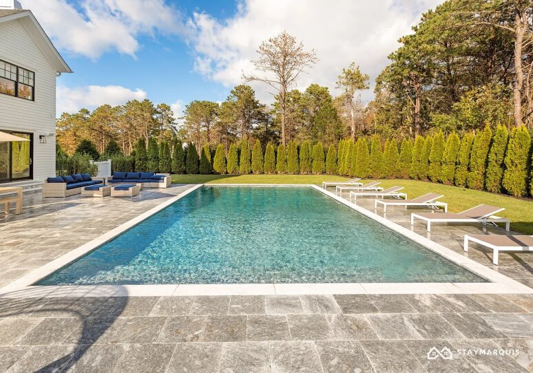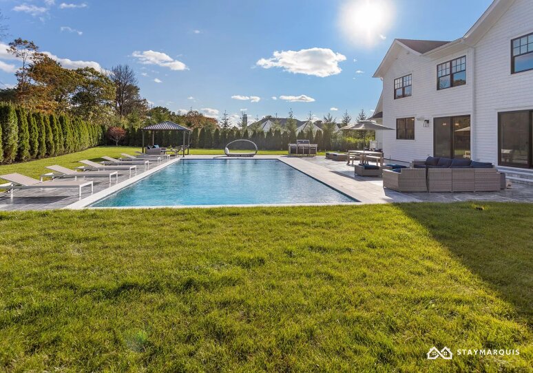 Venture to Cheviot Compound for the ultimate summer getaway! This bright, wonderfully curated home offers any amenity one could need, including stainless steel kitchen appliances, a fitness studio, an attached sauna, a Sonos surround-sound speaker system, and a near-lap-size gunite pool. Venture into town — a few minutes drive by car — or, better yet, hop on one of the two beach cruisers offered with the home! If, however, you prefer to relax around the property, grab a book and spend the day lounging by the pool surrounded by green hedges for ultimate privacy, or walk to a private beach directly from the back lawn. When standing in the kitchen or living, you'll notice how the home is flooded with natural light thanks to the floor-to-ceiling windows. After the sun goes down, enjoy a lovely meal outside with friends and/or family under the stars. Nuzzle into one of the sectionals on either level to watch a late-night movie, or whip out some board games or cards to play around one of the two, large dining tables. After a long day of play, retire to one of the extremely spacious, well-decorated bedrooms to get a good night’s sleep. Cheviot Compound will surely feel like a relaxing, beautiful, and spacious home away from home.