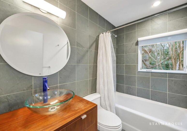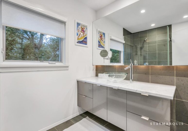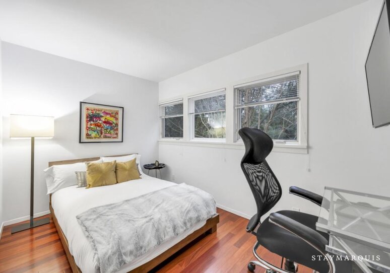 The bedrooms are designed as calm, comfortable retreats at the end of each day. Each space features fresh linens, plush bedding, and thoughtfully curated details that make guests feel instantly at ease. The bathrooms are clean, modern, and well-appointed, stocked with all the essentials needed for a comfortable stay. With a layout that works beautifully for couples, families, or groups of friends, the home offers both shared living spaces and private areas to recharge.