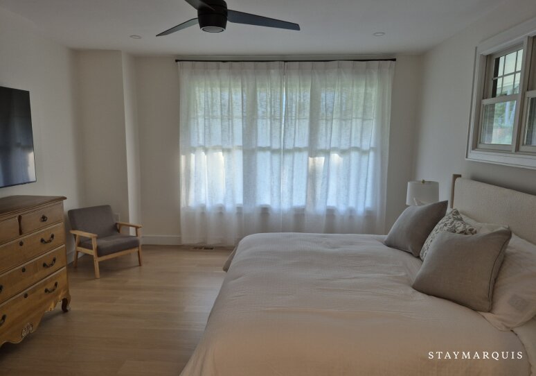 Tucked away on a beautiful private block in Hampton Bays, this classic traditional home offers a refined yet welcoming escape designed with families and groups in mind. Thoughtfully arranged with an open floor plan, the home immediately invites guests to unwind and settle into a slower pace of life. Sunlight pours through generous windows, illuminating warm, comfortable living spaces that feel both elevated and approachable. A well-appointed bedroom and bath on the main level provide convenience and flexibility, ideal for multi-generational stays or guests seeking added privacy. From the moment of arrival, the home creates a sense of calm—an effortless retreat from the demands of everyday life.