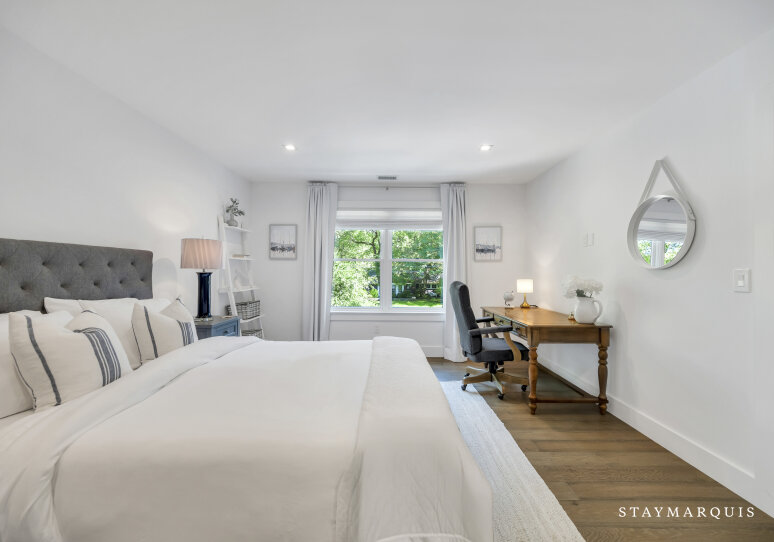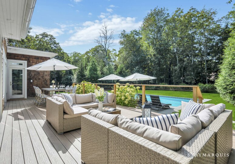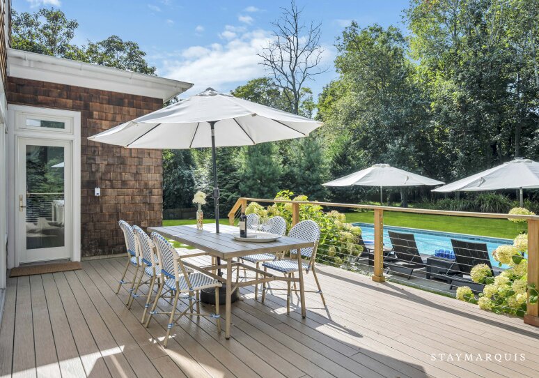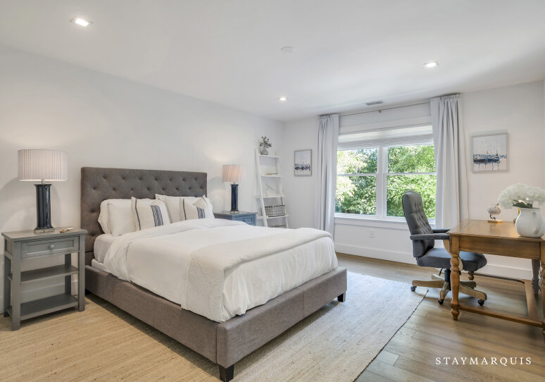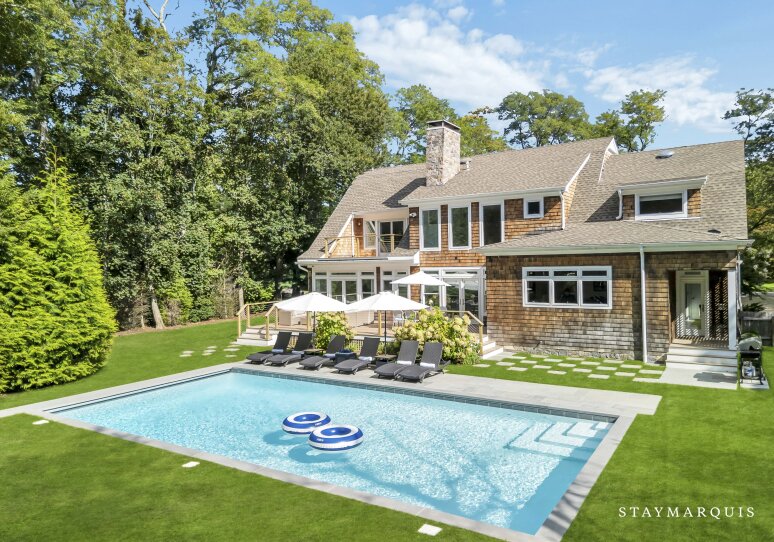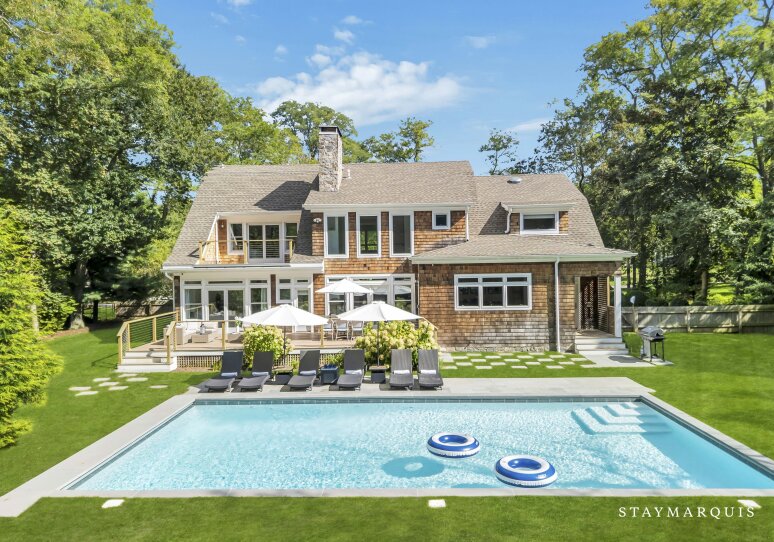Perched near Sag Harbor Cove lies this charming, modern coastal farmhouse-style home with a private pool, open-floor plan, and beautiful backyard. Upon entering the home, you will immediately be struck by the bright and airy atmosphere illuminated with natural light. There are two living rooms — one with double height ceilings neighboring a dining table comfortably set for ten. Novice and well-seasoned chefs are welcome to cook in the gourmet kitchen that comes with an oversized island, stainless steel appliances, and ample counter space for meal prep or laying out hors d’oeuvres. During the day, curl up with your favorite book and relax on any one of the loungers adjacent to the glistening pool. Head to one of the nearby beaches — a 10 minute walk to Foster Memorial Town Beach and 5 minute drive to Haven’s Beach — you have nothing but wonderful options. As the sun begins to set, hop on a provided beach cruiser and venture into downtown Sag Harbor for sight-seeing, shopping, and renowned local restaurants. Retire to one of the spacious bedrooms for a peaceful night’s sleep, or stargaze with a nightcap from the upstairs deck. For unparalleled sleep and leisure, each bed in this property is made with temperature-regulating and luxuriously soft bamboo viscose linens by Cozy Earth. Rest assured, there is plenty of drawer and closet space to completely unpack and settle in. With new coastal furnishings, pool, and wonderful amenities, this Coves Bay Beauty has all the makings for a memorable stay!