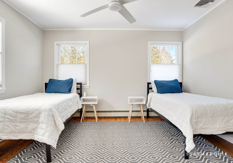 The home features three well-appointed bedrooms and two full bathrooms, each designed to provide a restful, hotel-quality experience. Fresh linens, plush bedding, and thoughtfully curated essentials create a sense of calm and comfort at the end of the day. The bedrooms offer a peaceful retreat for restful nights, while the bathrooms are stocked with everything guests need for a seamless stay—soft towels, quality toiletries, and plenty of space to refresh and recharge.