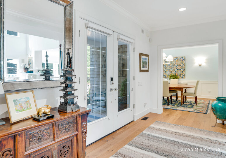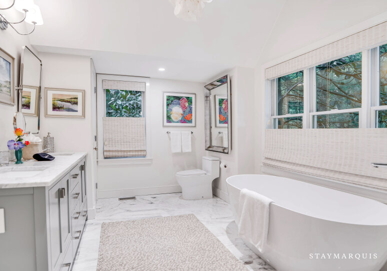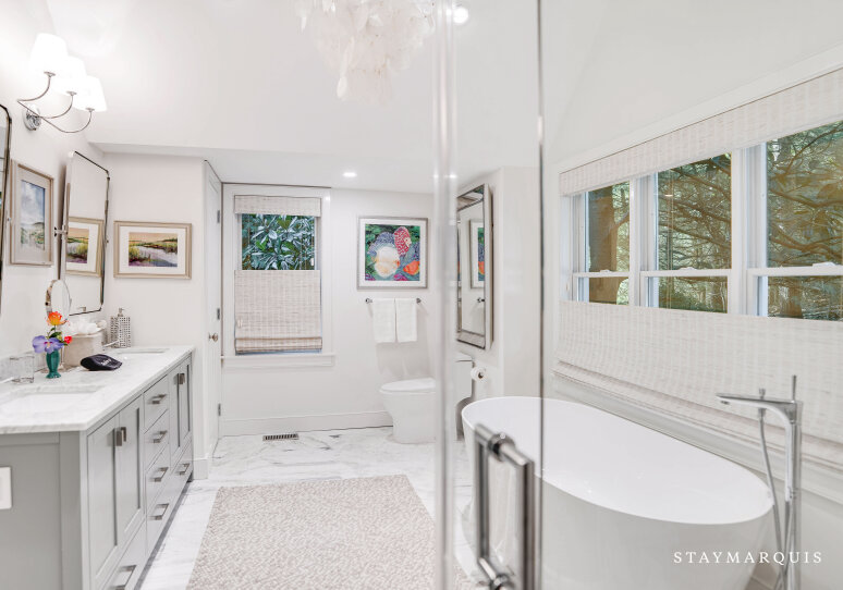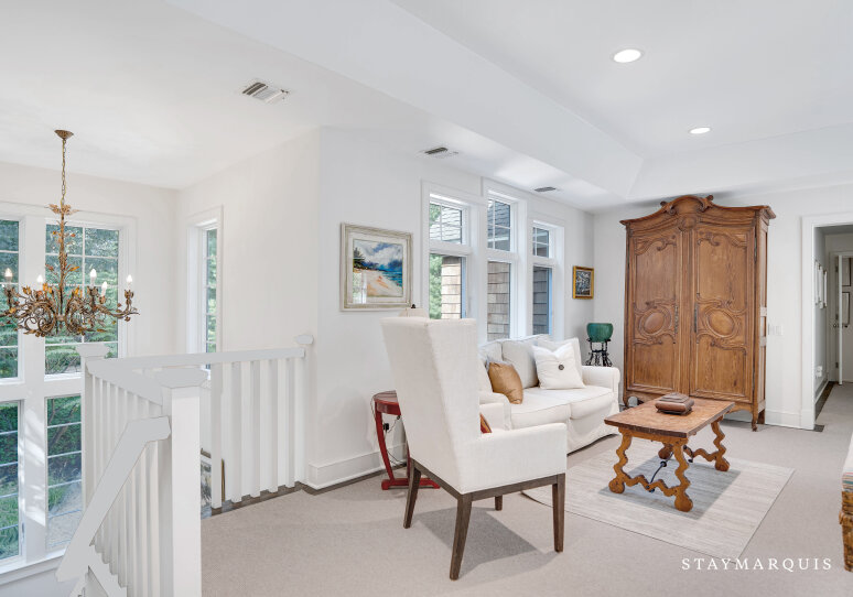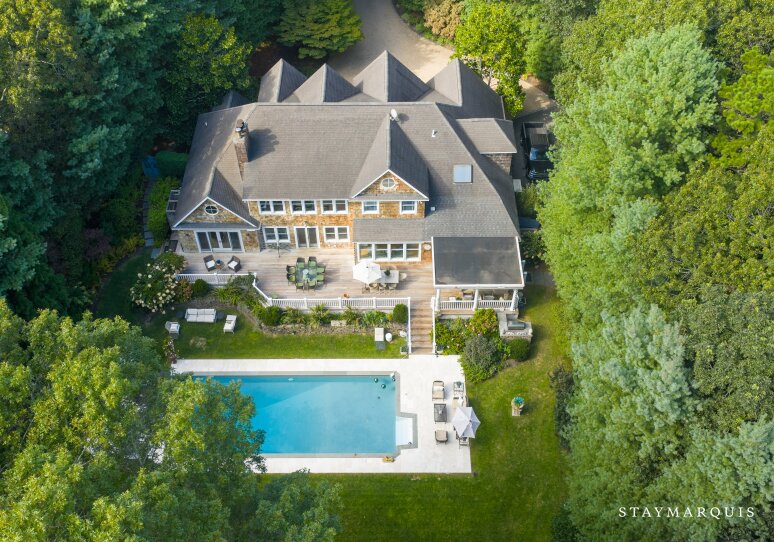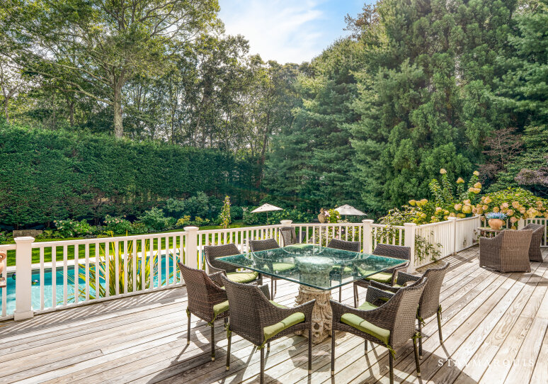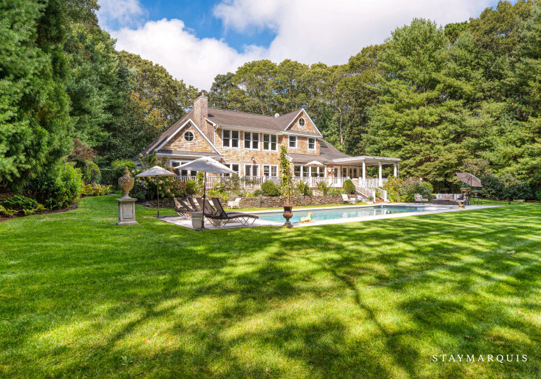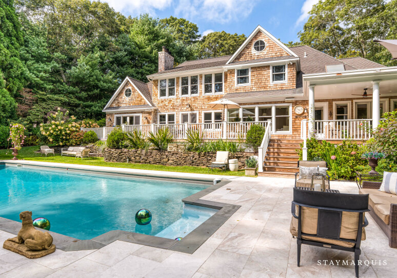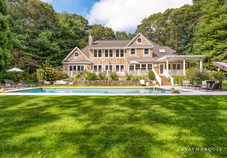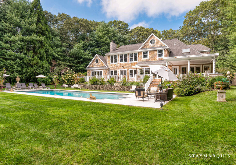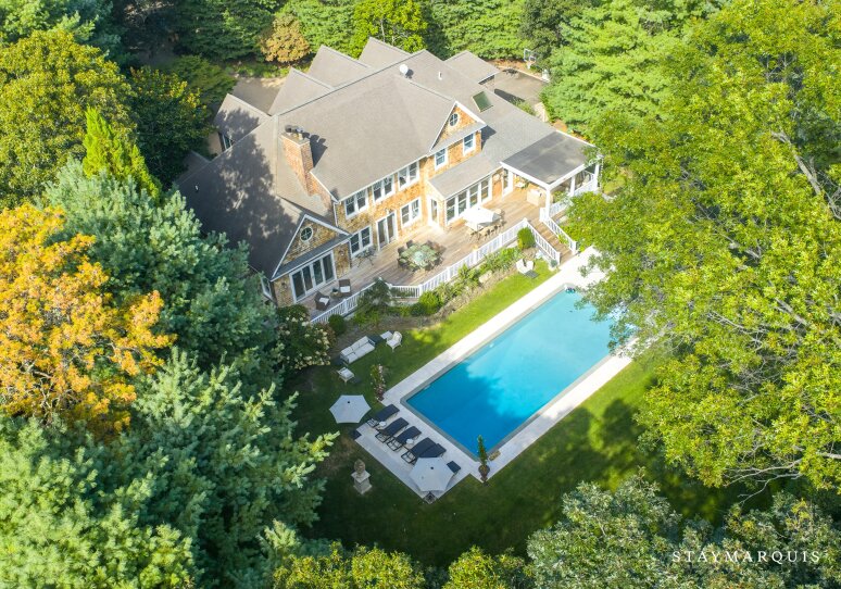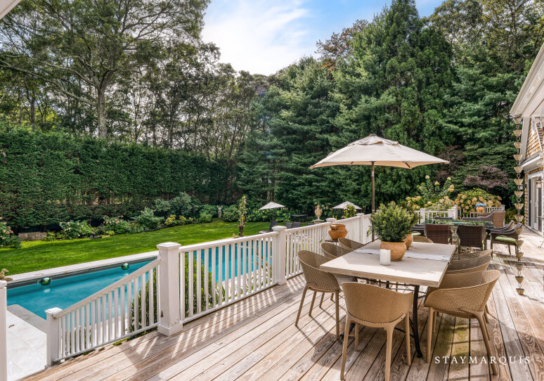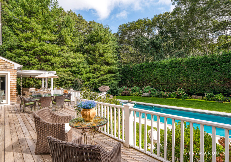 Your outdoor oasis truly is the jewel of this stunning home. Featuring multiple areas to indulge in, there is a space to suit every mood. Relax in the shade under the covered porch, dine alfresco style in the sun, or take a splash in the gorgeous pool with lounge seating. Backed to a wooded area, there is privacy in abundance to make you feel right at home. Set in a private community, enjoy access to a few community amenities including a basketball court and all-weather tennis court. Life along the South Fork is never a dull one as you are conveniently located just minutes to the best beaches, restaurants, and markets in town. The tranquility and ambiance elevated from the natural beauty of Designer's Dream, will make your stay a truly unforgettable experience.