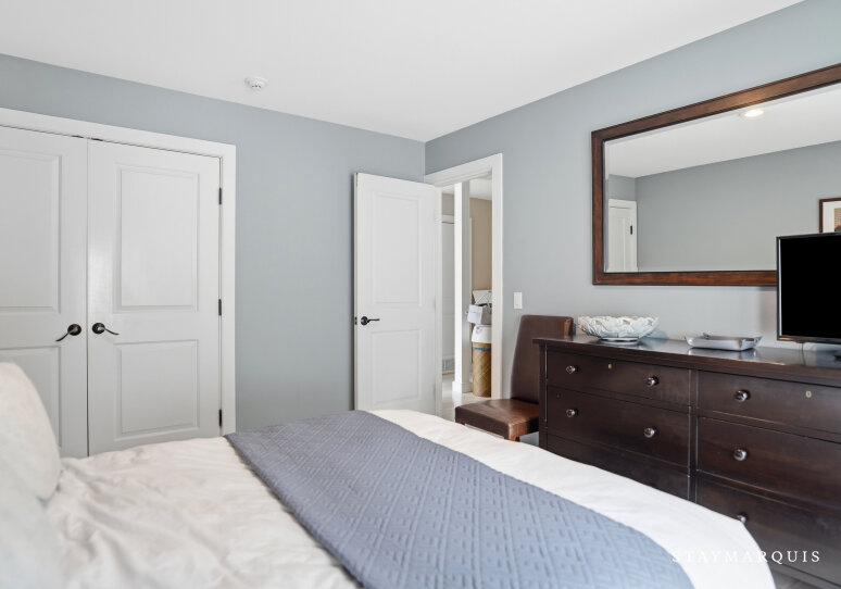 - Bedroom 2: One Queen Bed, First Floor/Main Floor, Air Conditioning, Full Jack & Jill Ensuite Bathroom, Standard Closet, Balcony/Deck