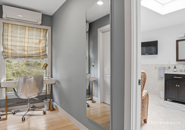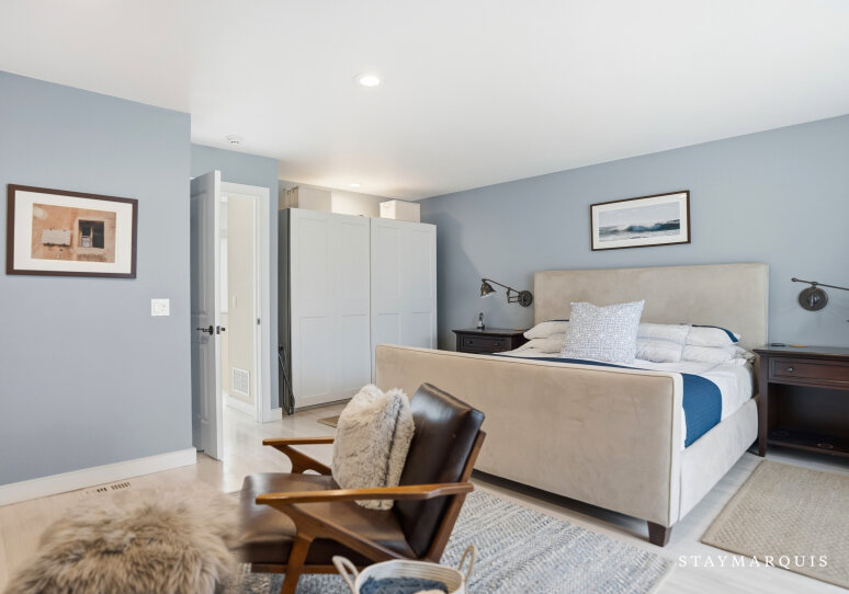 - Bedroom 3: One Queen Bed, First Floor/Main Floor, Air Conditioning, Full Jack & Jill Ensuite Bathroom, Standard Closet, Balcony/Deck