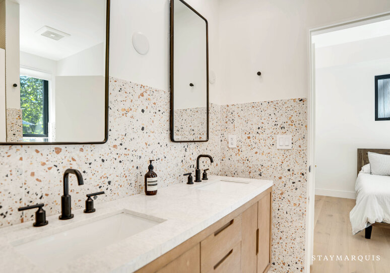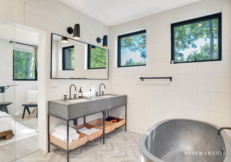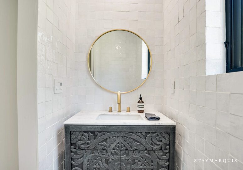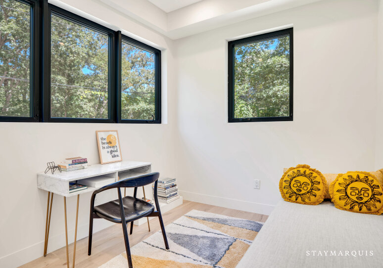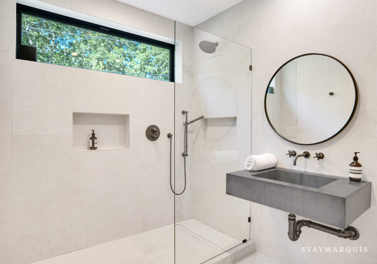The home’s four bedrooms and three-and-a-half bathrooms are designed to be peaceful retreats, each offering a unique blend of comfort and luxury. Fresh linens and plush bedding ensure a restful night’s sleep, while the tastefully appointed décor creates a serene atmosphere in every room. The master suite is a true sanctuary, featuring a king-sized bed, ample closet space, and an en-suite bathroom complete with all the essentials for a spa-like experience. Each bathroom is stocked with fluffy towels and high-end toiletries, providing everything you need to feel pampered during your stay. Whether you’re getting ready for a day of exploring or winding down in the evening, the home’s bathrooms are designed to make your daily routine a pleasure.