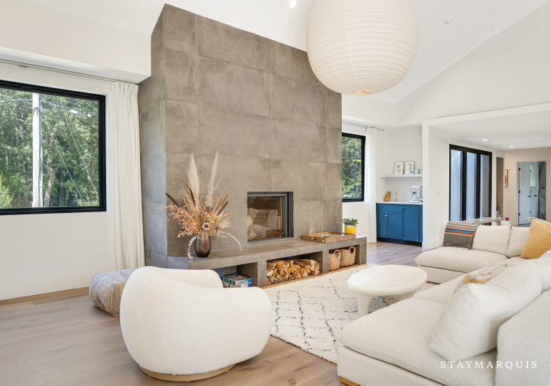 Step inside, and you’ll find yourself in a home that truly embraces an open-concept layout, where natural light pours in through large windows, highlighting the clean lines and modern design of the interiors. The living spaces flow effortlessly from one area to the next, creating a harmonious environment that feels both spacious and cozy. The living room is anchored by a stylish fireplace, perfect for curling up on cooler evenings, while the adjacent dining room offers a more formal space for meals with its elegant furnishings. The gourmet island kitchen is a chef’s dream, equipped with top-of-the-line appliances, including a professional-grade stove and oven, a coffee maker for your morning brew, and plenty of counter space for meal preparation. The kitchen’s central island serves as both a workspace and a gathering spot, making it easy to socialize while cooking. Whether you’re enjoying a casual breakfast or a multi-course dinner, the kitchen and dining areas are designed to accommodate your needs with style and ease. For those who need to stay connected, the home offers a dedicated work-from-home space with high-speed Wi-Fi, ensuring that you can balance work and leisure effortlessly. And when it’s time to unwind, challenge your friends or family to a game of ping-pong in the recreation area, adding a fun and playful element to your stay.