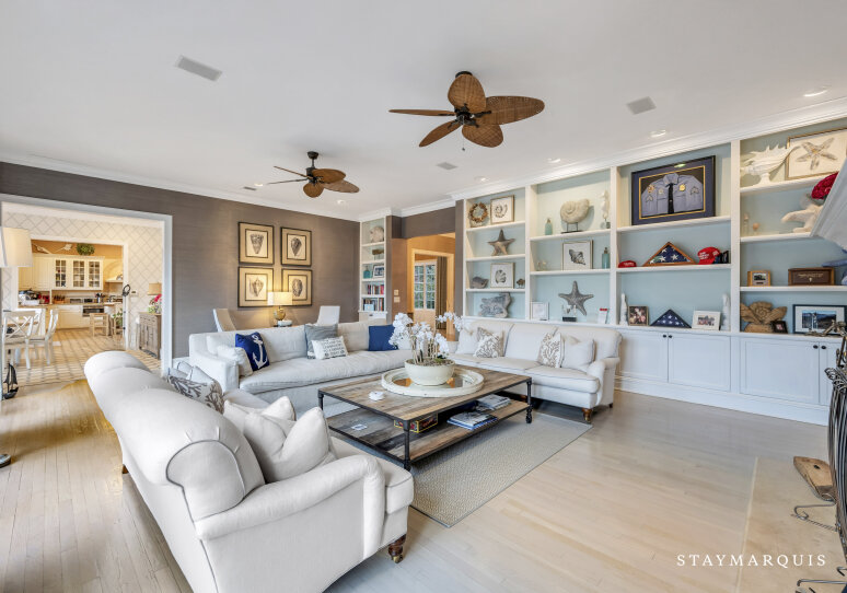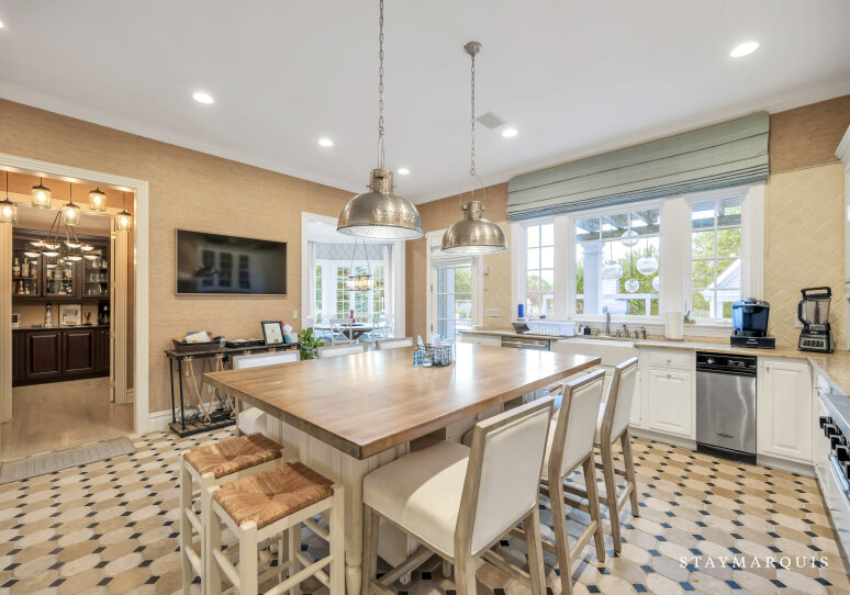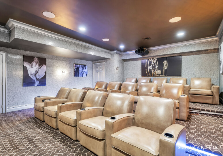 Upon entering, guests are greeted by a grand foyer leading into an open-concept living area characterized by soaring ceilings, expansive windows, and an abundance of natural light. The chef's kitchen is a culinary enthusiast's dream, featuring top-of-the-line appliances, a spacious center island, and an adjacent butler's pantry for added convenience. The formal dining room, bathed in sunlight, offers an elegant setting for intimate dinners. For those seeking a more casual dining experience, the eat-in kitchen provides a comfortable space for meals. The great room, with its inviting fireplace, serves as the heart of the home, seamlessly connecting to the screened-in porch and outdoor living areas. Additional highlights include a recreation room, wine cellar, and movie theater room, ensuring entertainment options for all ages.