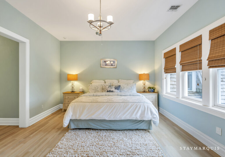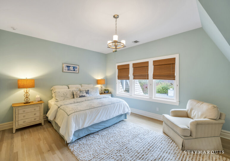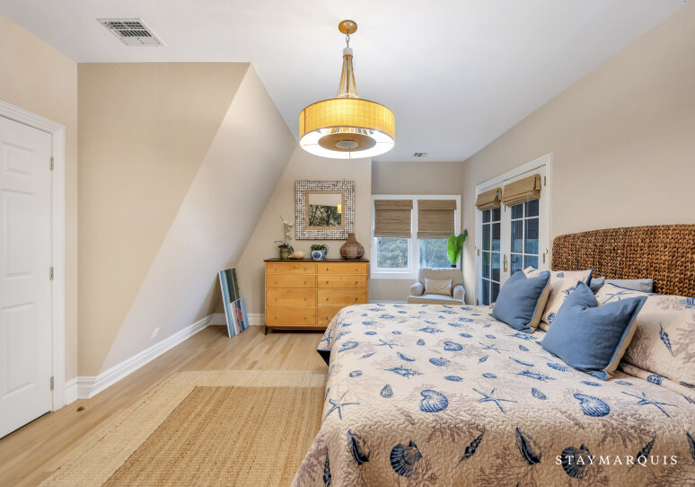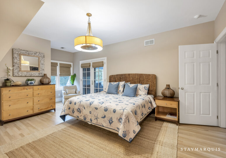 - Primary Bedroom: One King Bed, 2nd Floor, Air Conditioning, Ensuite Bathroom, Streaming TV, Closet, Balcony/Deck