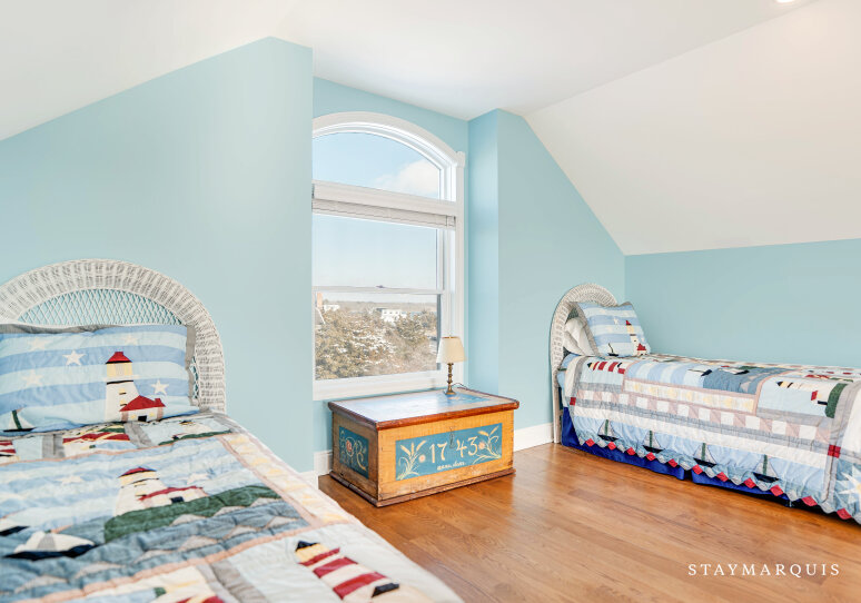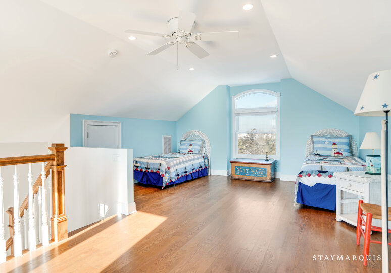 The exterior spaces are a true highlight, offering a mix of adventure, relaxation, and scenic beauty. Guests can enjoy total privacy while taking advantage of the home’s waterfront access, including kayaks and paddleboards for exploring the bay. The outdoor spaces are designed for comfort and social gatherings, featuring a wood-burning firepit, an outdoor shower, and a gas grill perfect for alfresco dining. Families and groups will also appreciate access to basketball courts and a communal tennis court, providing endless opportunities for outdoor fun. The home’s expansive yard and well-maintained landscaping create a peaceful environment to unwind after a day in the sun, making it a true retreat for both active adventures and quiet moments.