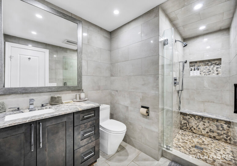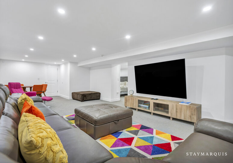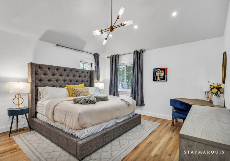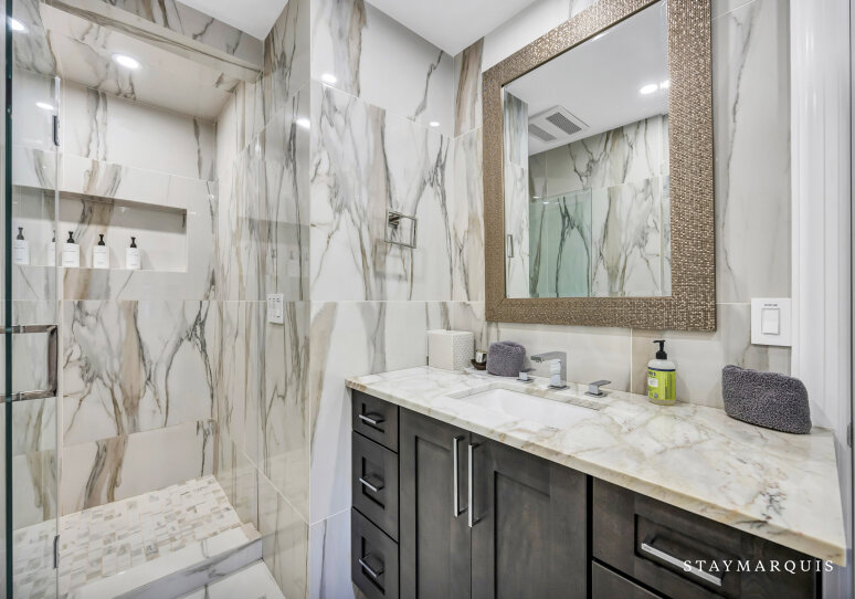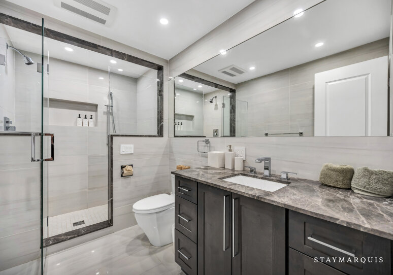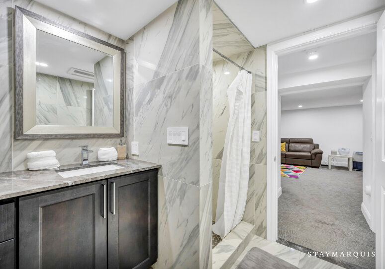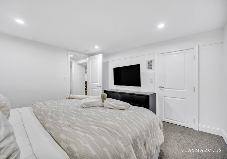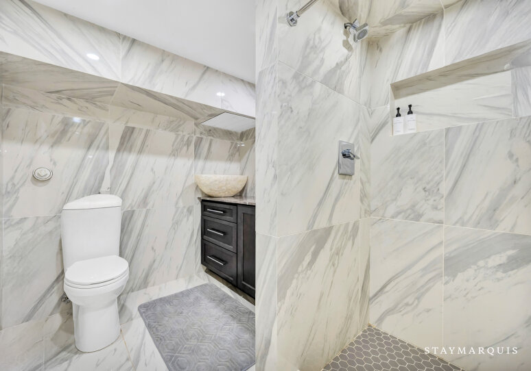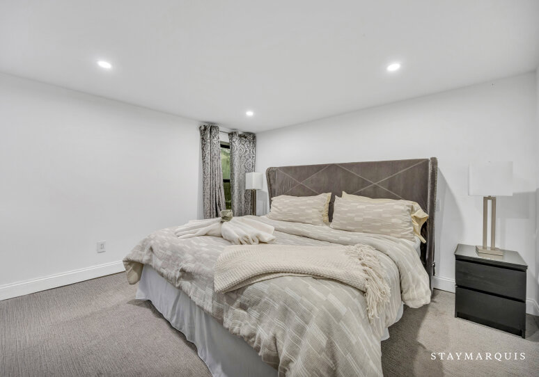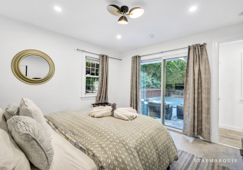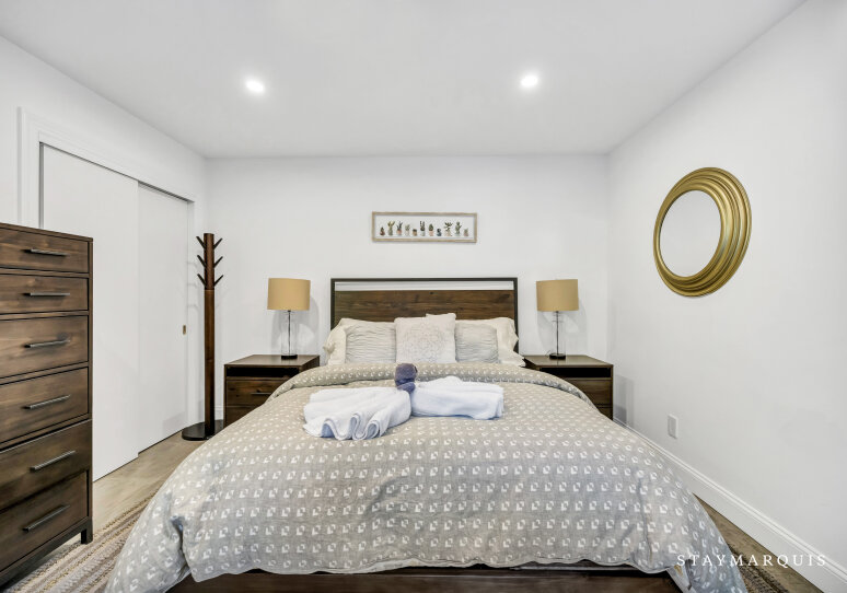 Each bedroom is a haven of comfort, outfitted with fresh linens and all the essentials you need for a restful night's sleep. The bathrooms are elegantly designed, offering a spa-like experience with high-quality fixtures and finishes.