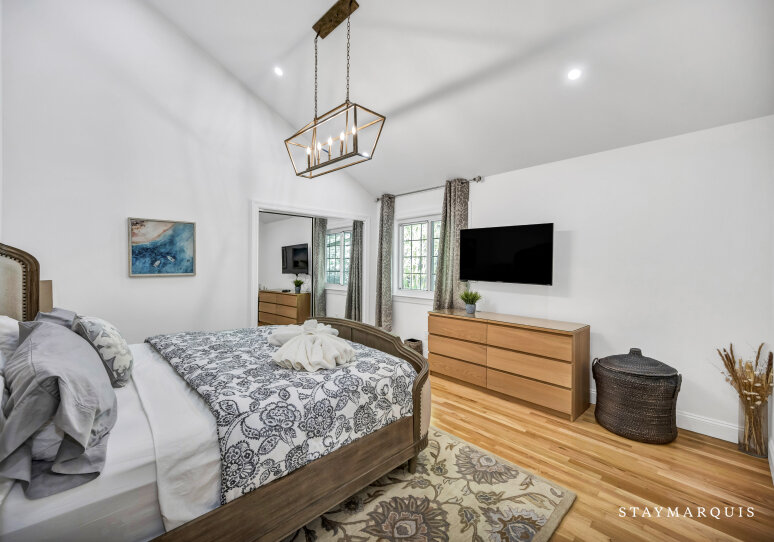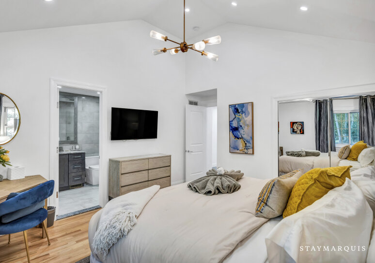 - Bedroom 4: One King Bed, First Floor/Main Floor, Air Conditioning, Full Ensuite Bathroom, Streaming TV, Standard Closet