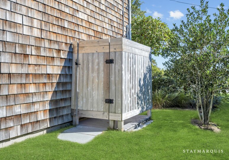 Step outside to discover a private oasis designed for outdoor enjoyment. The picturesque backyard offers lush greenspace leading gently down to the water’s edge, where days can be spent basking in the sun or launching a kayak for a serene paddle. The expansive deck serves as an outdoor living room, complete with comfortable sofas and a dining area perfect for sunset dinners overlooking the water. A gas grill stands ready for casual barbecues, while an outdoor shower provides a refreshing end to a day spent at the nearby beach. With ample parking and peaceful surroundings, the property delivers a resort-like atmosphere that feels worlds away, yet conveniently close to all the attractions of the Hamptons.