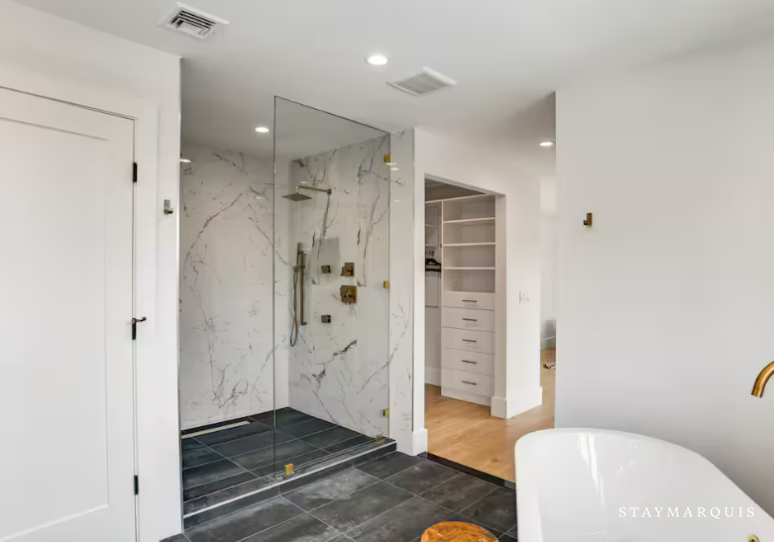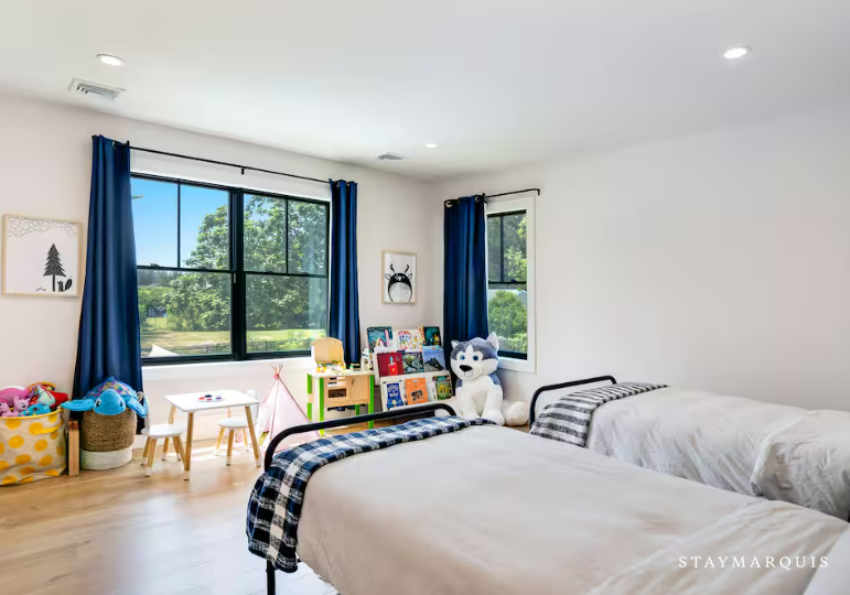 Each bedroom is designed with rest and rejuvenation in mind. Plush mattresses, fresh high-quality linens, and calming décor create peaceful retreats where guests can unwind at the end of the day. The bathrooms are equally well-appointed, stocked with soft towels and all the essentials needed for a seamless stay. With six bedrooms and four-and-a-half bathrooms, the home comfortably accommodates families and groups while offering plenty of personal space.