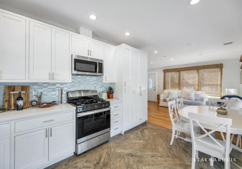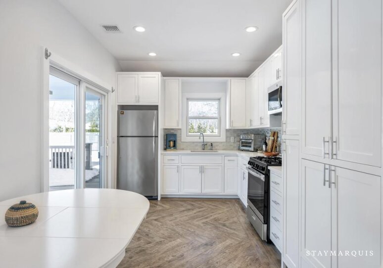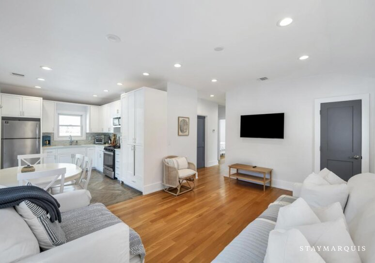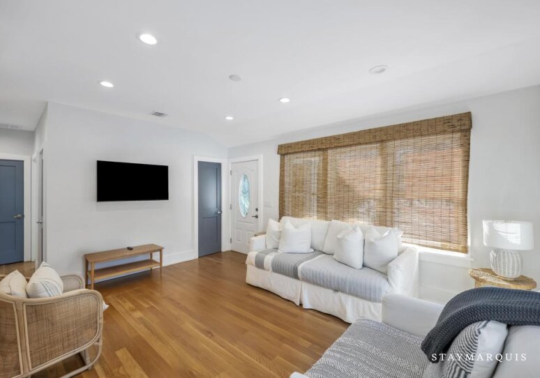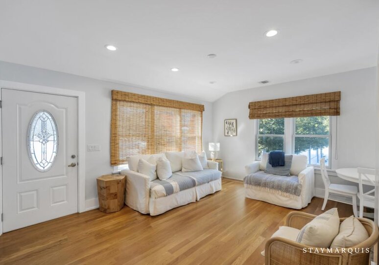 The bedrooms are designed to be serene retreats at the end of the day. Each room is thoughtfully furnished with fresh linens, comfortable bedding, and all the essentials to ensure restful nights. The 1.5 bathrooms are modern, well-appointed, and stocked with necessities, offering convenience and privacy for all guests. The layout works beautifully for families or groups of friends, providing both shared and private spaces to relax, recharge, and enjoy the Hamptons lifestyle.