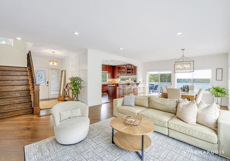 As you step inside, you are welcomed by an open layout that basks in an abundance of natural light, creating an atmosphere of tranquility and relaxation. The open living spaces, consisting of the living room, dining room, and kitchen, are seamlessly interconnected, promoting easy socializing and entertainment. Every corner of the home has been designed with your comfort in mind.