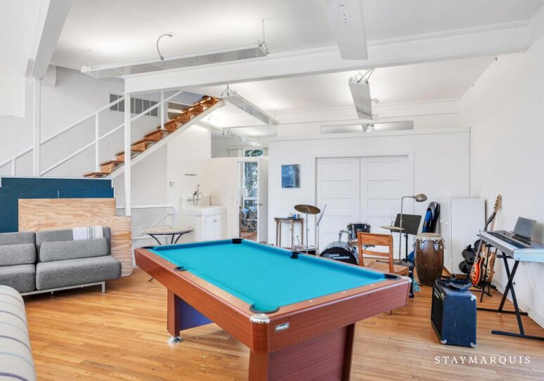 Step outside, and the home’s exterior amenities come alive, offering a private oasis designed for both recreation and relaxation. A heated pool provides the perfect setting for sunny afternoons spent swimming or lounging poolside, while the outdoor shower offers a refreshing rinse after a dip. Guests can enjoy friendly competitions on the ping pong table, challenge one another to a match on the pool table, or take leisurely rides on the bicycles provided. Alfresco dining is effortless with a gas grill and ample outdoor seating, allowing for sunset dinners in a serene, fully private setting. Whether enjoying the pool, engaging in games, or simply soaking up the quiet ambiance, the property offers a level of privacy and comfort that makes every moment feel special, intimate, and luxurious.