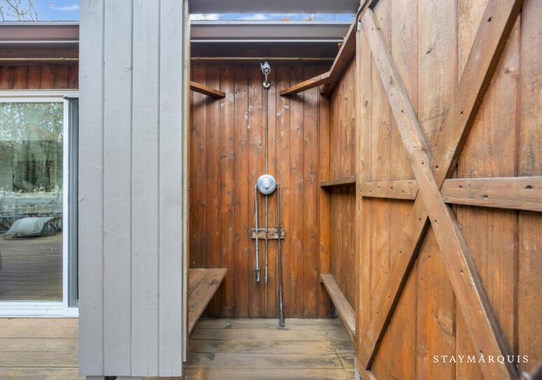 Step outside, and the true magic of this retreat comes to life. The home boasts a private pool, framed by lush landscaping, ensuring complete privacy for sun-soaked afternoons or star-lit swims. A spacious deck extends from the main living area, creating a seamless indoor-outdoor experience perfect for al fresco dining or evening cocktails. For culinary enthusiasts, a top-of-the-line gas grill invites guests to enjoy casual cookouts in a serene setting, while a wine fridge ensures the perfect chilled pairing is always within reach. An outdoor shower offers a refreshing rinse after a day at the nearby beaches, enhancing the sense of luxury and ease that defines this Southampton escape. Here, total privacy meets thoughtful amenities, creating an oasis where every moment feels indulgent yet effortlessly comfortable.