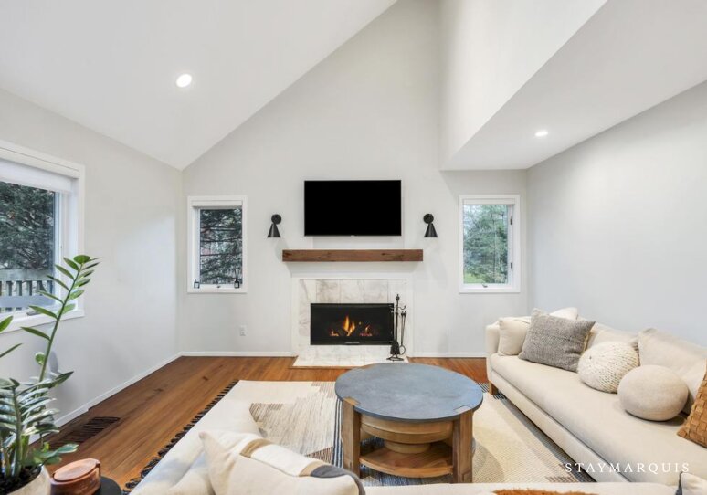Bed Linens, Usable Fireplace (Wood), Air Conditioning (Central Air), Dryer, Heating, Internet (Wifi), Washer, Garage (Attached), Hair Dryer, Iron/Ironing Board, Living Room, Parking, Bath Towels, Pool/Beach Towels, Microwave, Coffee (Pot, Keurig), Dishes and Silverware, Pots and Pans, Toaster, Blender, Television (Main Living Room), Kitchen, Carbon Monoxide Detector, Smoke Detector, Hot Water, Refrigerator, Oven, Stove, Dishwasher, Essentials, Smart TV, Wine Fridge, Ice Maker, Laptop-Friendly Workspace, Privacy (Mostly Private), Private Entrance, Cable TV