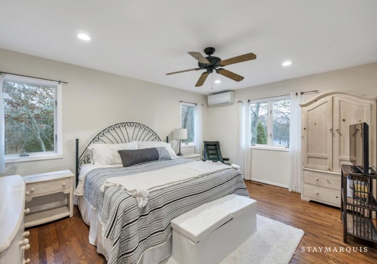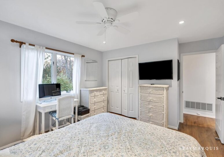 Each bedroom offers a sanctuary of comfort and tranquility, featuring fresh, high-quality linens and soft bedding to ensure restful nights. The three pristine bathrooms are stocked with all essentials and finished with subtle, elegant touches that reflect the Hamptons’ timeless style. Every room has been meticulously prepared to provide guests with a sense of ease and relaxation, ensuring that the only thing left to do is unwind and enjoy the surroundings. Whether preparing for a day at the beach or settling in for a quiet evening at home, guests will find every detail has been considered to enhance comfort and convenience.