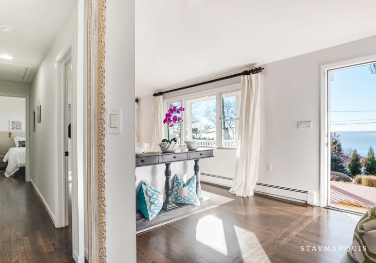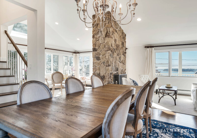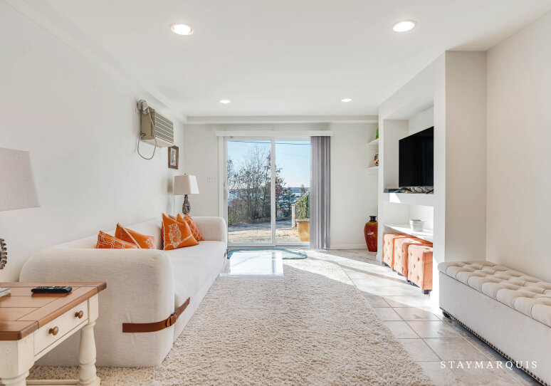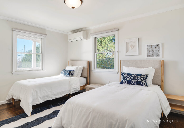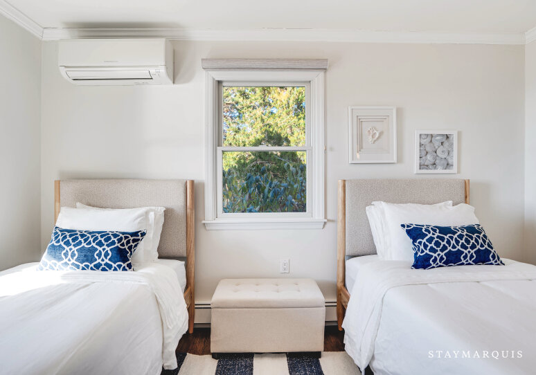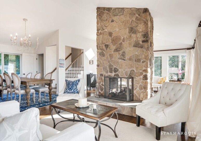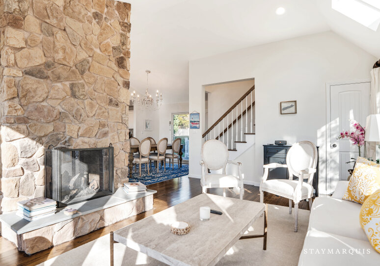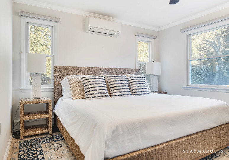 Inside, the home is thoughtfully designed to create a bright, open, and welcoming atmosphere. Sunlight streams through expansive windows, illuminating the spacious living room and creating a warm, inviting environment for conversation, reading, or simply unwinding. The open layout allows for seamless flow from the living room to the dining area and gourmet kitchen, which features top-of-the-line appliances, ample counter space, and a coffee maker to start every day effortlessly. Modern comforts like high-speed WiFi, central air conditioning, and a washer and dryer enhance convenience, while carefully designed common areas offer elegant yet livable spaces for gatherings. Every detail has been curated to provide a sense of luxury without compromising comfort, making it easy for guests to feel at home while enjoying a sophisticated coastal retreat.