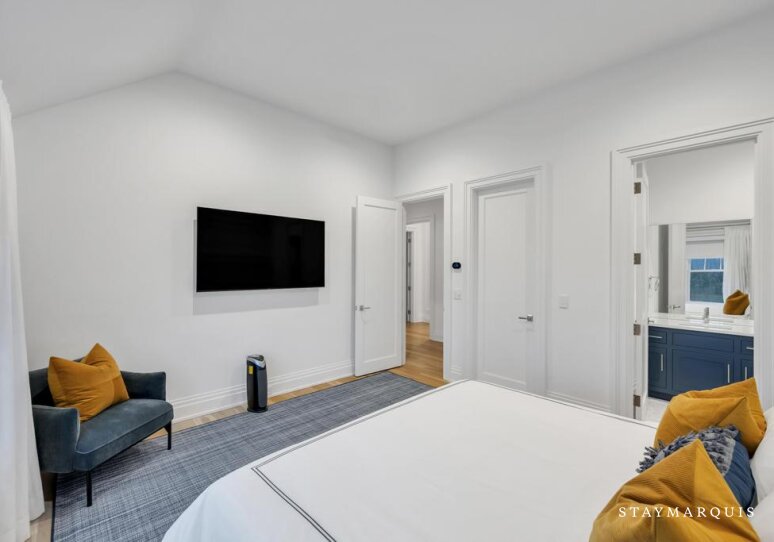 - Bedroom 4 - Guest En-Suite: One Queen Bed, 2nd Floor, Air Conditioning, Ensuite Bathroom, Cable Satellite TV, Closet