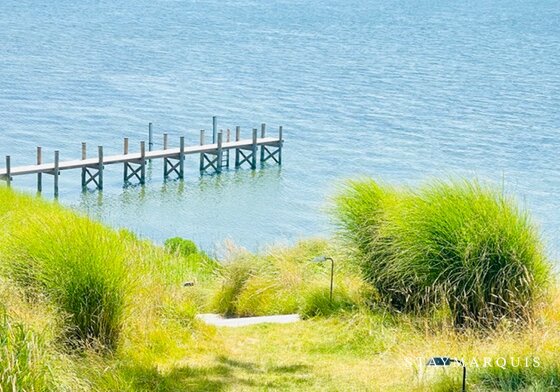 Outdoors, the experience is defined by complete privacy and a rare combination of waterfront and beachfront living. Expansive grounds stretch toward the water, where guests can enjoy a private dock, a heated pool, and direct beach access just steps away. Multiple outdoor areas invite lingering mornings and relaxed afternoons, from poolside lounging to shaded seating ideal for conversation and cocktails. A swing set adds a thoughtful touch for younger guests, while the surrounding landscape ensures a peaceful, secluded setting that feels worlds away from the pace of daily life.