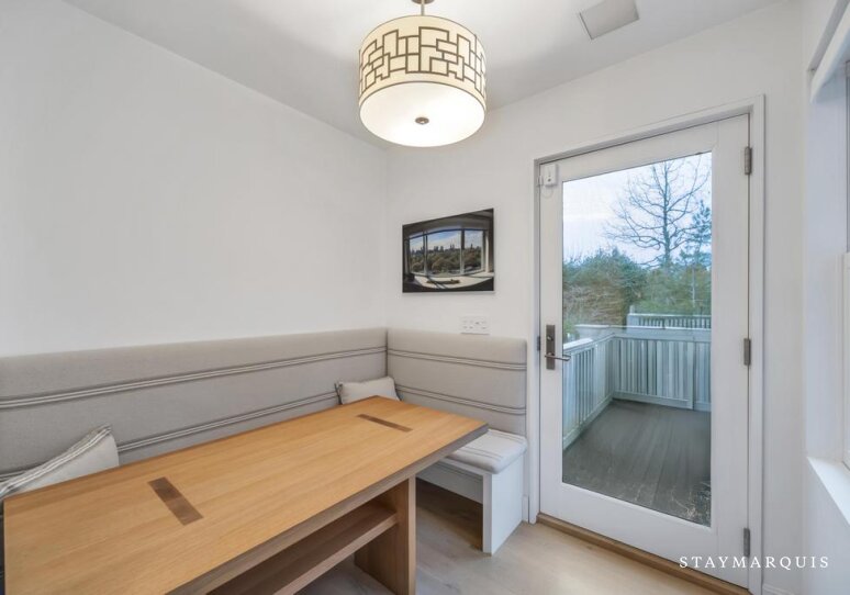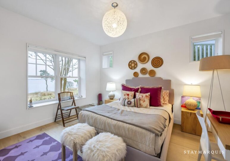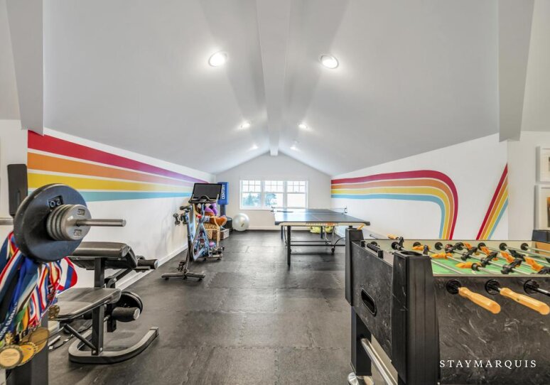 Inside, the home unfolds with an easy, light-filled flow. Large windows frame water views and allow natural light to move freely through the open living spaces. The main living room invites gathering with comfortable seating and seamless transitions to the dining area, making it ideal for shared meals and evenings together. The gourmet kitchen is a centerpiece of the home, outfitted with top-of-the-line appliances, a Nespresso coffee maker, and everything needed to prepare anything from casual breakfasts to celebratory dinners. Central air conditioning, high-speed WiFi, and a full washer and dryer ensure modern comfort throughout the stay. Additional spaces elevate the experience even further, including a dedicated gym, a game room perfect for entertainment, and extra sleeping areas that provide flexibility for larger groups.