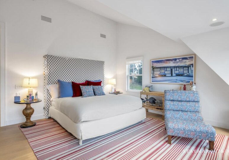 The bedrooms are designed as calming retreats, each appointed with fresh linens, plush bedding, and thoughtful details that encourage rest and relaxation. A mix of bedroom configurations allows the home to comfortably accommodate a variety of group needs, while the bathrooms are stocked with all the essentials for a seamless stay. Whether starting the day with quiet moments or winding down after a full afternoon at the beach, guests will find each space inviting and well considered.