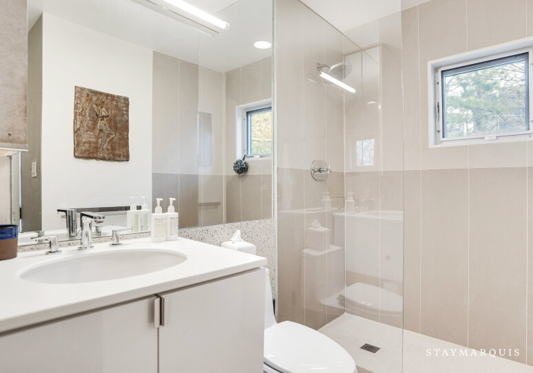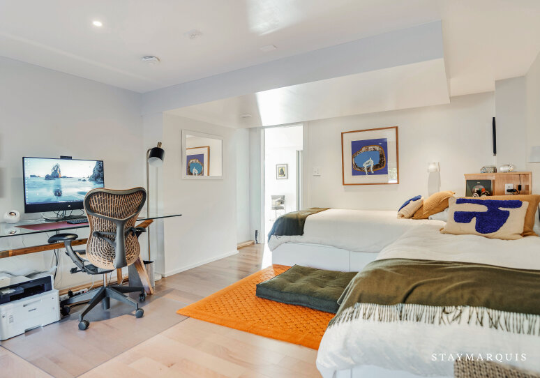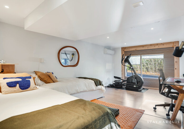 The four bedrooms are designed with intention, offering plush comfort and calming simplicity. Fresh linens, soft textures, and warm lighting create restful environments where guests can unwind after beach days or poolside afternoons. Each of the three bathrooms is outfitted with high-quality essentials, modern fixtures, and spa-inspired touches that elevate daily rituals. Additional amenities include a private gym, providing space for wellness routines, morning workouts, or stretching while taking in the surrounding natural beauty. With its modern design, abundant natural light, and expansive indoor–outdoor spaces, this 4BR/3BA property offers a thoughtful balance of privacy, amenities, and effortless livability.