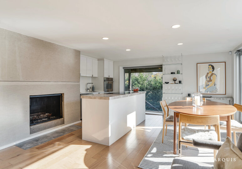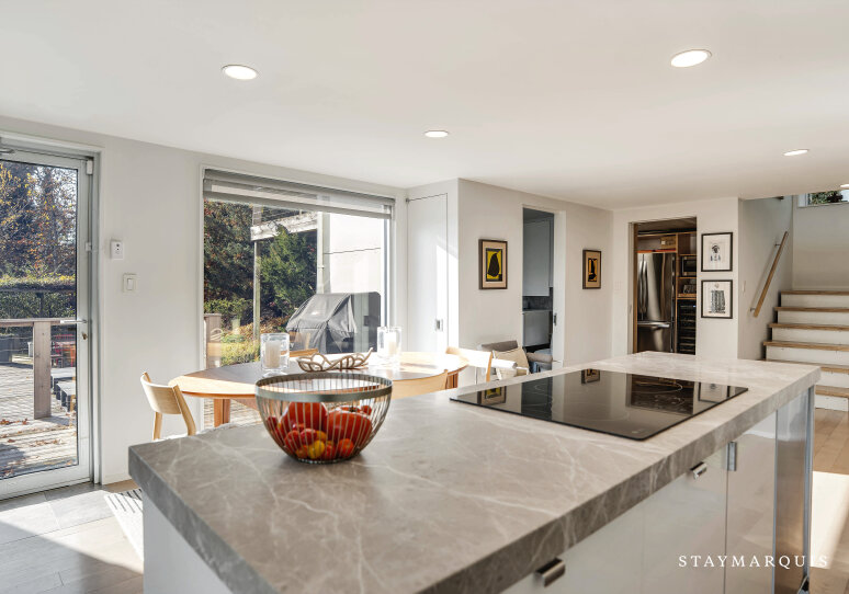 The flow into the dining area and sleek, well-stocked kitchen feels effortless, making this property ideal for preparing shared meals, hosting dinners, or enjoying a slow morning coffee while admiring the view. Outfitted with top-of-the-line appliances, ample counter space, and every essential needed for gourmet cooking, the kitchen blends function and style with ease.
