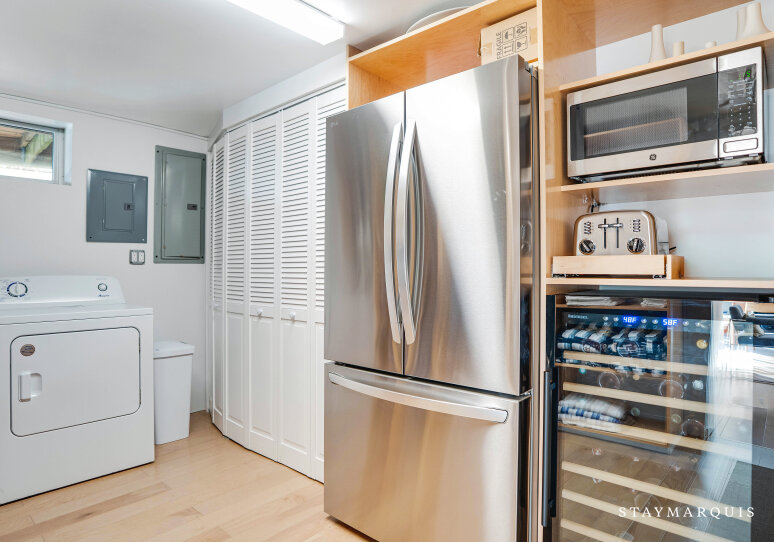 Bed Linens, Usable Fireplace (Gas-Burning), Air Conditioning (Central Air), Dryer, Heating, Internet (Wifi), Washer, Hair Dryer, Iron/Ironing Board, Living Room, Parking, Bath Towels, Pool/Beach Towels, Microwave, Coffee (Pot, Keurig, Other), Dishes and Silverware, Pots and Pans, Toaster, Blender, Television (Main Living Room, Den), Private Entrance, Kitchen, Carbon Monoxide Detector, Smoke Detector, Hot Water, Refrigerator, Oven, Stove, Dishwasher, Fire Extinguisher, Smart TV, Wine Fridge, Ice Maker, Laptop-Friendly Workspace, Privacy (Completely Private), Essentials, Gym/Fitness Room (Elliptical)