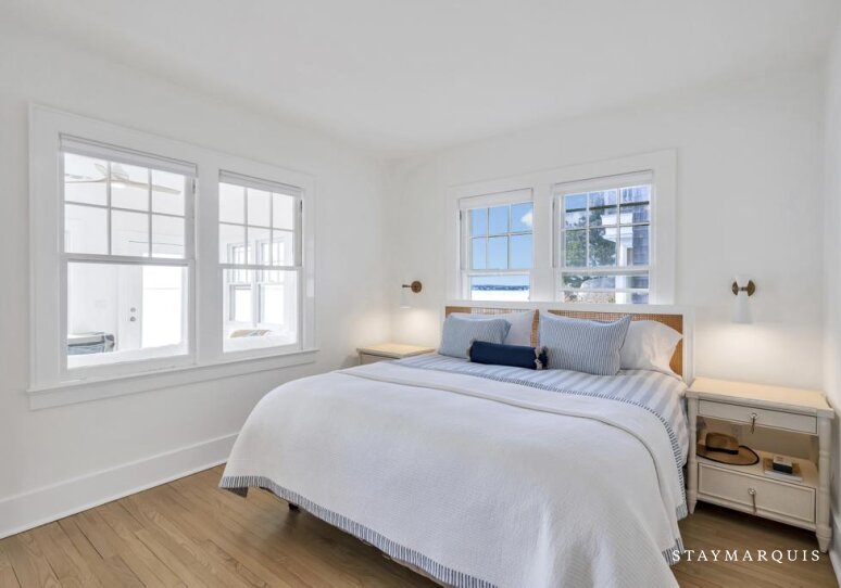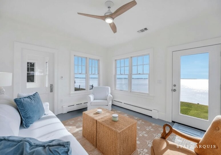 The bedrooms offer tranquil retreats after days spent exploring or lounging by the water. Each room is prepared with fresh linens, soft textures, and serene décor, encouraging deep rest and a sense of calm. The bathrooms are well-appointed with clean, modern finishes and stocked with all the essentials needed for a smooth and comfortable stay. With two bedrooms and two-and-a-half bathrooms, guests have the space to unwind in privacy while still enjoying shared time together in the home’s inviting common areas. Whether waking to sunrise views or ending the day with a quiet moment by the fire, the sleeping spaces provide a restorative sanctuary for every traveler.
