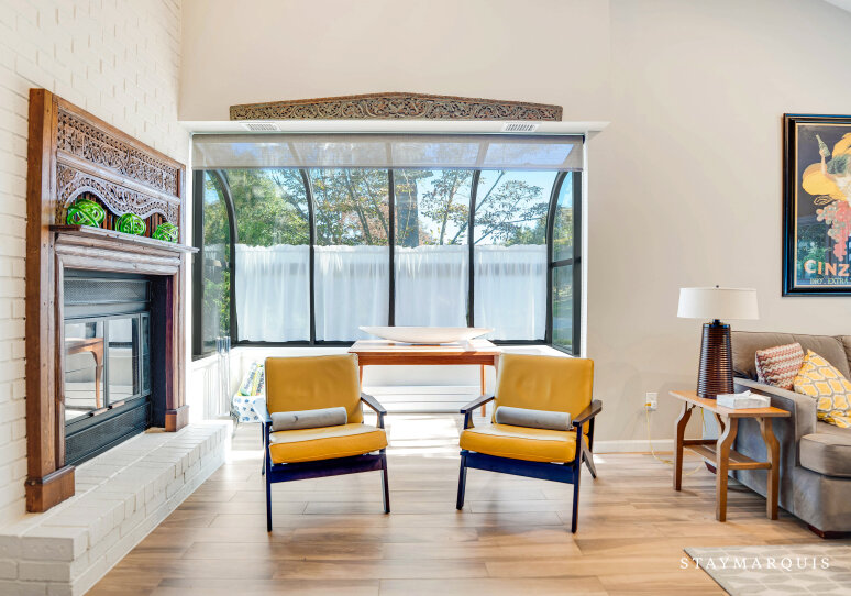 Bed Linens, Usable Fireplace (Wood), Air Conditioning (Central Air), Dryer, Heating, Washer, Hair Dryer, Iron/Ironing Board, Living Room, Parking, Bath Towels, Pool/Beach Towels, Microwave, Coffee (Keurig, Other), Dishes and Silverware, Pots and Pans, Toaster, Blender, Television (Main Living Room), Private Entrance, Kitchen, Carbon Monoxide Detector, Smoke Detector, Hot Water, Refrigerator, Oven, Stove, Dishwasher, Fire Extinguisher, Smart TV, Ice Maker, Laptop-Friendly Workspace, Privacy (Completely Private), Essentials
