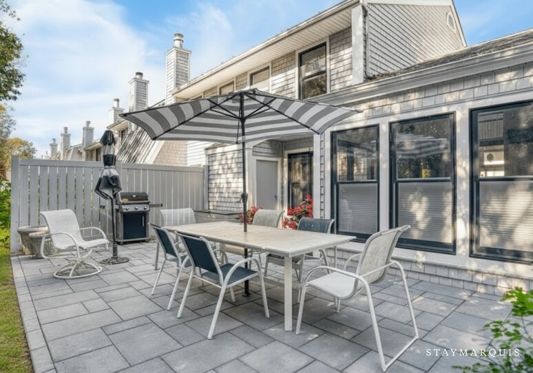 The property’s exterior embodies a relaxed resort atmosphere, perfectly suited for a summer escape or a year-round retreat. Step outside onto the private patio and unwind beneath the Hamptons sun surrounded by lush landscaping and thoughtfully designed outdoor living areas. Enjoy long afternoons spent grilling on the gas BBQ, gathering around the large outdoor dining table for leisurely meals, or simply relaxing with a good book in the fresh coastal air. Just steps away, residents and guests enjoy full access to the community’s exceptional amenities—a sparkling pool and rejuvenating hot tub for sun-soaked days and starry evenings, pristine tennis and pickle ball courts for friendly matches, shuffleboard and bocce ball for family fun. With complimentary parking and easy access to both the beach and village, this home makes every moment of your stay effortless and indulgent.