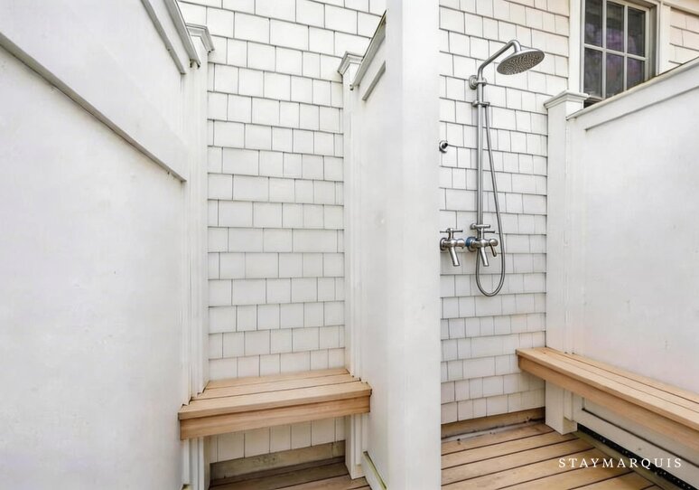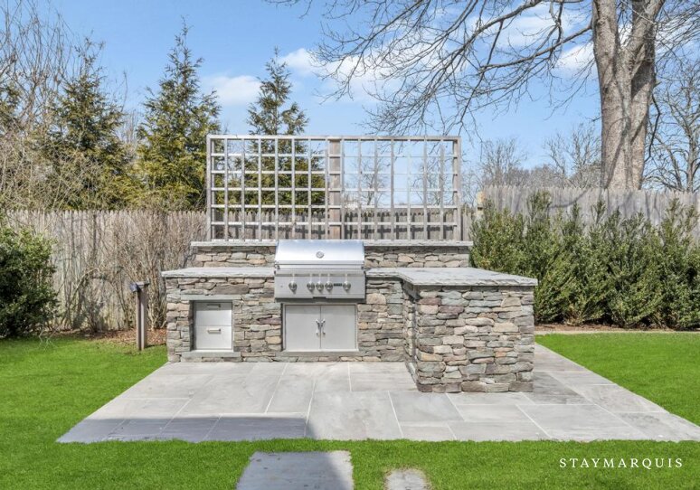 The outdoor spaces elevate the experience even further, offering a private retreat that feels worlds away while remaining close to everything Southampton has to offer. Lush landscaping surrounds the backyard, creating total privacy and a true sense of seclusion. At the center, the private heated pool invites long summer afternoons spent swimming, lounging, and soaking up the sun, while the hot tub provides the perfect way to unwind as the day comes to a close. A covered patio offers shaded comfort for outdoor dining or relaxed conversation, and the gas grill makes it easy to enjoy meals al fresco. The outdoor shower adds a classic coastal touch after time at the beach or pool, allowing guests to fully embrace indoor-outdoor living in a setting designed for relaxation and ease.