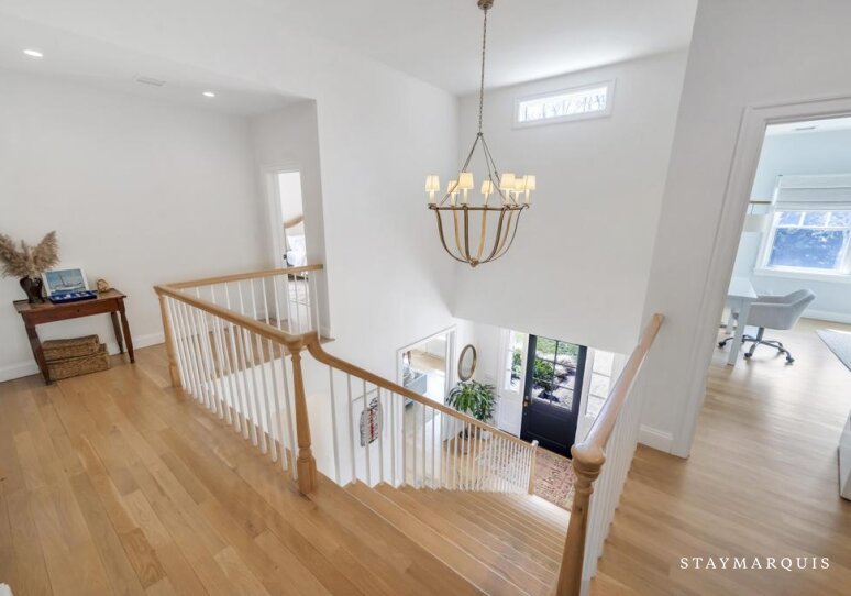The gourmet kitchen is beautifully equipped with top-of-the-line appliances, generous counter space, and everything needed to prepare meals with ease. From casual breakfasts to celebratory dinners, the kitchen supports every moment of the day. A coffee maker is ready for slow mornings, while high-speed WiFi and a laptop-friendly workspace ensure guests can stay connected when needed. Central air conditioning keeps the home comfortable year-round, and a washer and dryer add everyday convenience, allowing guests to settle in and truly feel at home for the duration of their stay.
