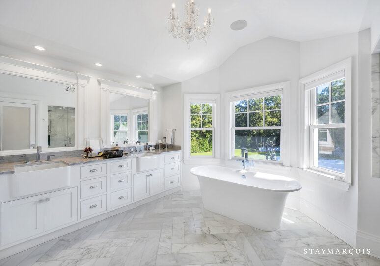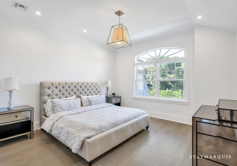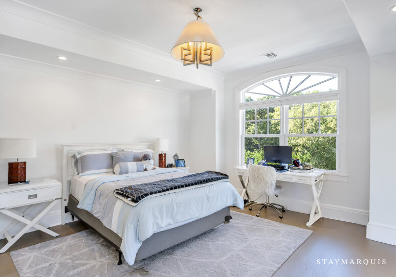 Ascend to the restful quarters: seven generously proportioned bedrooms, each designed with comfort and elegance in mind. The primary suite is a sanctuary: tall windows frame views over gardens, a sitting alcove invites late-night reading, and the en suite bath offers spa-like indulgences—soaking tub, rainfall shower, dual vanities, and premium finishes. The remaining bedrooms vary in configuration—some ideal for couples, others perfect for children or guests—yet all share a commitment to refined design, plush bedding, and tranquil ambiance. The 6.5 bathrooms spread throughout the home are finished in marble, glass, and refined hardware; some are ensuite for privacy, while others serve shared bedrooms or corridors. Each bathroom offers either a glass-enclosed shower or a soaking tub (or both), luxurious vanities, high-end fixtures, and beautiful lighting to elevate everyday routines into moments of pleasure.