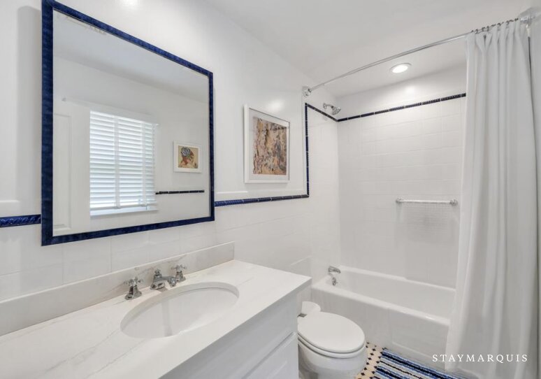 Three full bathrooms ensure you’ll never battle for vanity space or a turn in the shower. And a stress-free stay is made even easier with all the trappings of a convenient rental such as a washer and dryer, a grill, cozy bedding and linens, and more.