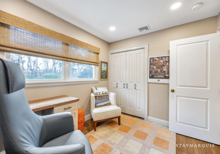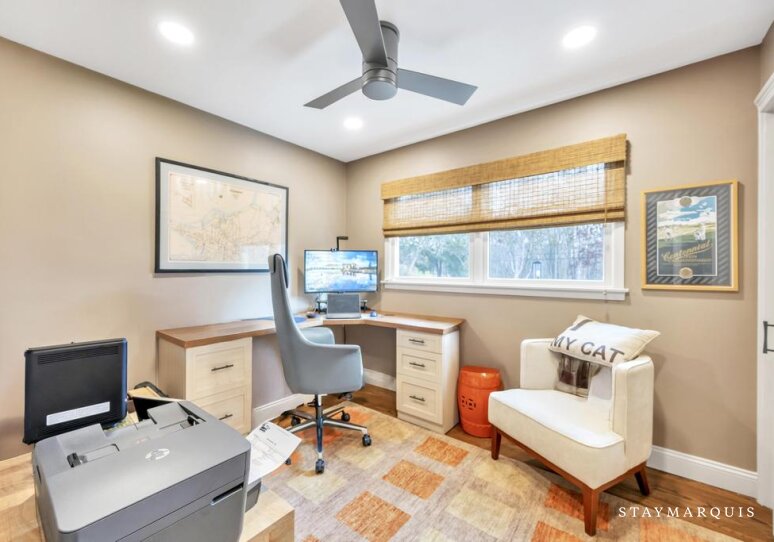 At night, settle into one of three bedrooms: one with a king-size bed, one with a queen-size bed, and one with two twins. The residence's fourth bedroom has been converted to an office if you need a private place to get some work done.