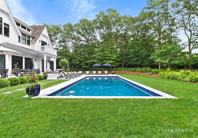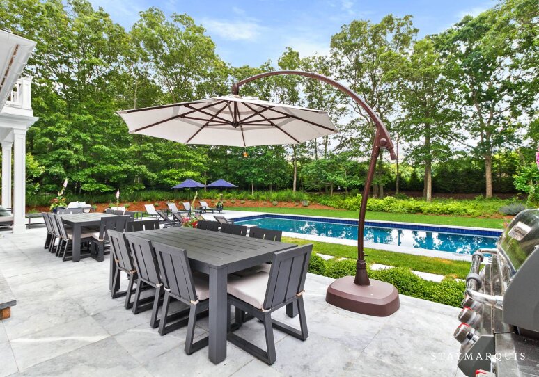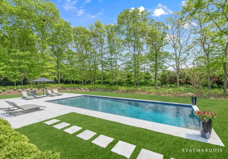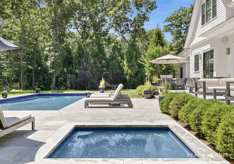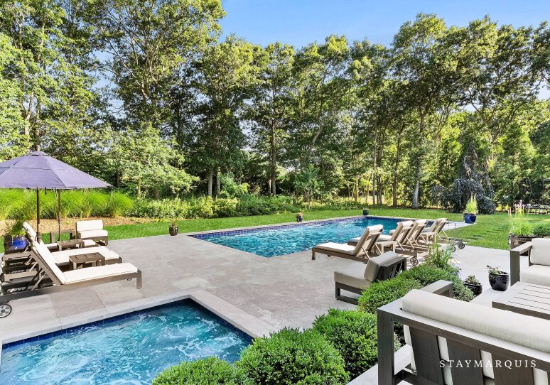 Resort-style Southampton retreat with heated pool, chic furnishings and seamless indoor-outdoor living.