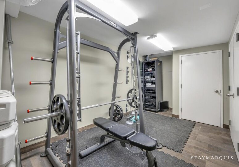 Bed Linens, Usable Fireplace (Gas-Burning), Air Conditioning (Central Air), Dryer, Heating, Internet (Wifi), Washer, Gym/Fitness Room (Weight Training Equipment), Garage (Attached, Available for renter cars), Hair Dryer, Iron/Ironing Board, Living Room, Parking, Bath Towels, Pool/Beach Towels, Microwave, Coffee (Pot, Other), Dishes and Silverware, Pots and Pans, Toaster, Blender, Television (Main Living Room, Media Room), Private Entrance, Kitchen, Carbon Monoxide Detector, Smoke Detector, Hot Water, Refrigerator, Oven, Stove, Dishwasher, Fire Extinguisher, Smart TV, Wine Fridge, Ice Maker, Laptop-Friendly Workspace, Privacy (Completely Private), Essentials