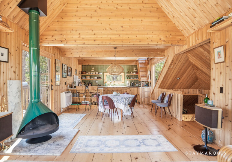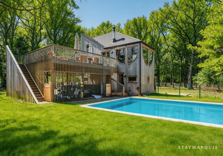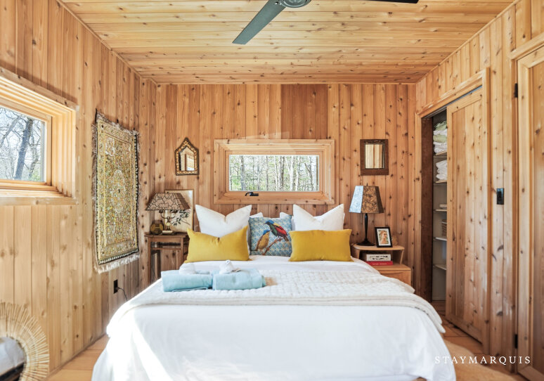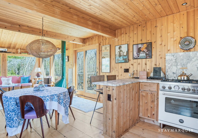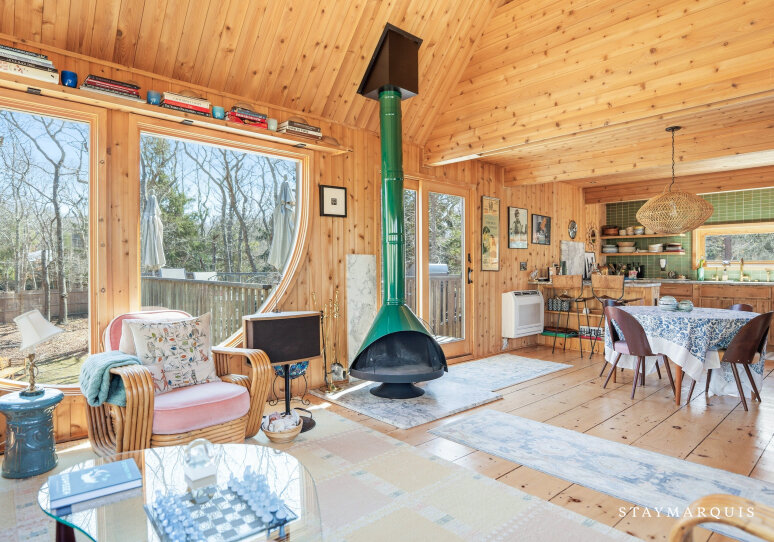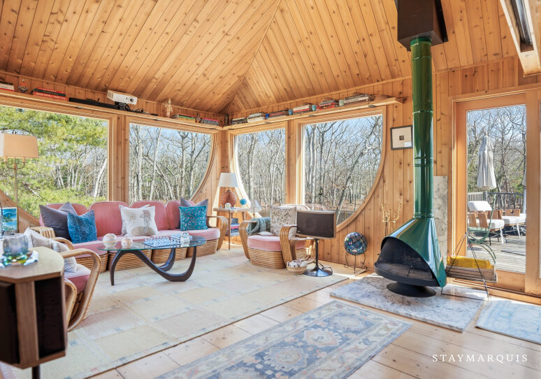 Designed and built by famed architect, Andrew Geller, in 1968, the Antler House was fully restored and updated in 2019 and has been featured in Dwell Magazine (Nov/Dec 2019), DesignBoom, Archinect, Curbed, etc.. The home also won an AIA Honor Award for restoration in 2020. The house has never been offered for rent and is a true gem for lovers of midcentury modern architecture and design. You can expect a 'one of a kind' vacation experience in this internationally recognized architectural masterpiece with impeccable interior design including designer finishes and period correct details, with a focus on escapism, bringing guests back to nature and total privacy. The home is like living in your own Wes Anderson movie with it's whimsical, adventurous, even wild spirit. It is one of a handful of Andrew Geller houses that still exist in the Hamptons and one of a few that have been restored to better than new condition. The Antler House is a 3-story, 3-bed, and 2-bath with a large outdoor entertaining deck and a brand new pool. An 'upside down' house with two bedrooms on the first floor, a great room and entertaining deck up on the second story and surrounded by a forest canopy, and a private 3rd story loft bedroom up above the tree tops. Just a few blocks from the beach, but nestled in a woodsy forest, the home is the best of both worlds - a modernist beach house and a cozy cabin. Set on a very private 1.1 acre lot on the Amagansett/East Hampton border of Historic Springs it's an easy drive or Uber to all the best hotspots and just down the street from the famous Springs General Store as well as kid-friendly and picturesque Louse Point beach. For unparalleled sleep and leisure, each bed in this property is made with temperature-regulating and luxuriously soft bamboo viscose linens by Cozy Earth.