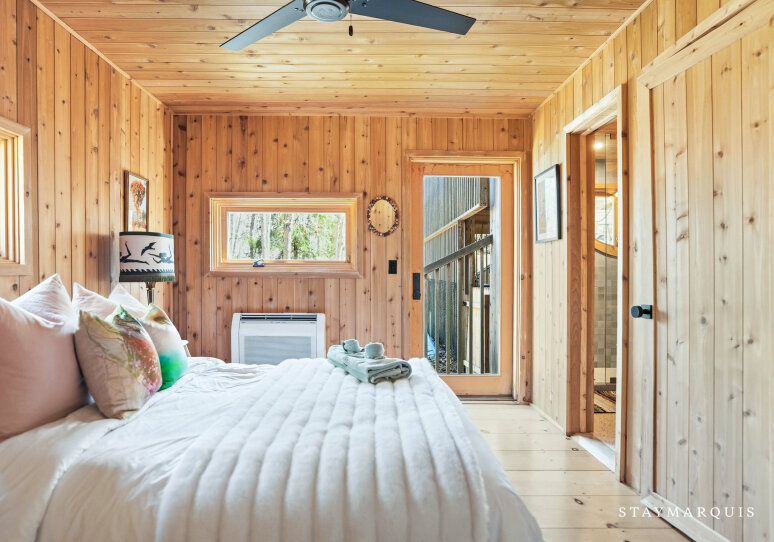 - Bedroom 1: One Queen Bed, First Floor/Main Floor, Air Conditioning, Ensuite Bathroom, Closet, Balcony/Deck